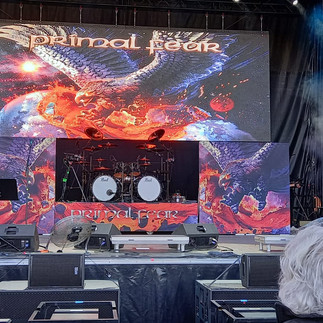 Nach ihrem Set, wurde die Bühne geräumt und der Drumriser der Band Primal Fear wurde auf die Bühne gefahren. Für mich stellte der Auftritt das Highlight des Festivals dar, da ich eigentlich nur für Primal Fear hin wollte :D Aber für die Band selber war es ein ganz besonderer Auftritt: zum einen weil es der erste Gig des neuen Line Ups war und zum anderen weil es den ersten Gig mit Matt Sinner (Bass) darstellt, der durch eine lange Krankheit die letzten 5 Jahre ausgefallen und auch zweimal für Tot erklärt wurden war. Man sah ihm zwar an, dass er noch nicht 100% geben konnte aber das hat der Freude keinen Abbruch getan, sowohl beim Publikum als auch bei der Band selber, die immer wieder betonten, dass es ein super Gefühl sei wieder da zu sein. So stieg man gleich mit voller Wucht mit dem Song "Final Embrache" vom Jaws of Death Album ein. Somit haben sie gleich zu Anfang schon gezeigt wo der Hammer hängt und was für eine kraftvolle Show uns erwarten würde. Es ging gleich im Anschluss mit der schnellen Hymne "Nuclear Fire" weiter. Generell haben sie ein Best-Of Set gespielt, plus Livepremiere der neuen Single "The Hunter" vom noch nicht erschienen neuen Album "Domination", die am 13.6. erscheinen wird. Was kann ich sagen? Cooler Song \m/ Ralf Scheepers (Vocals) war bestens bei Stimme und alle hohen Schreie saßen perfekt \m/